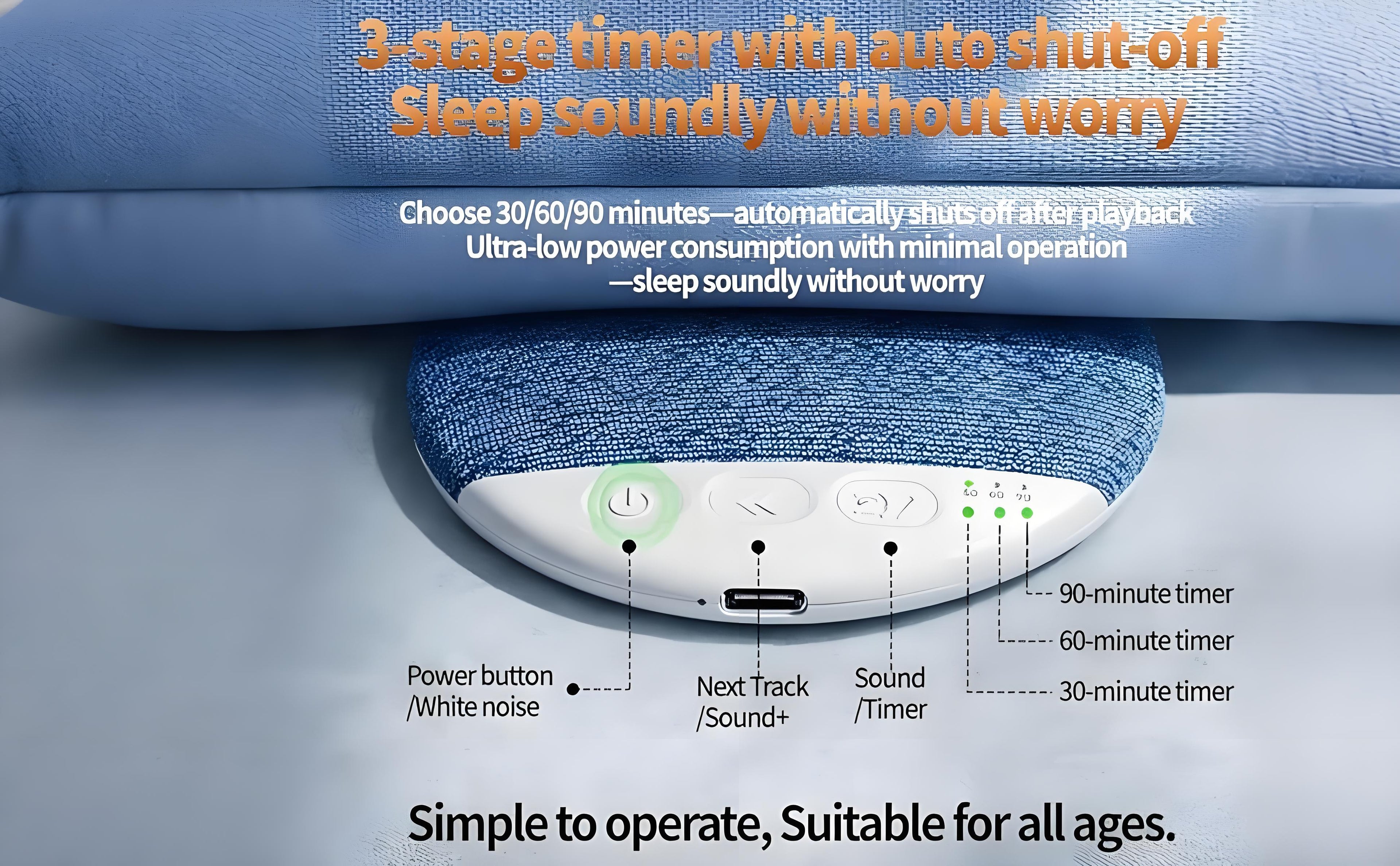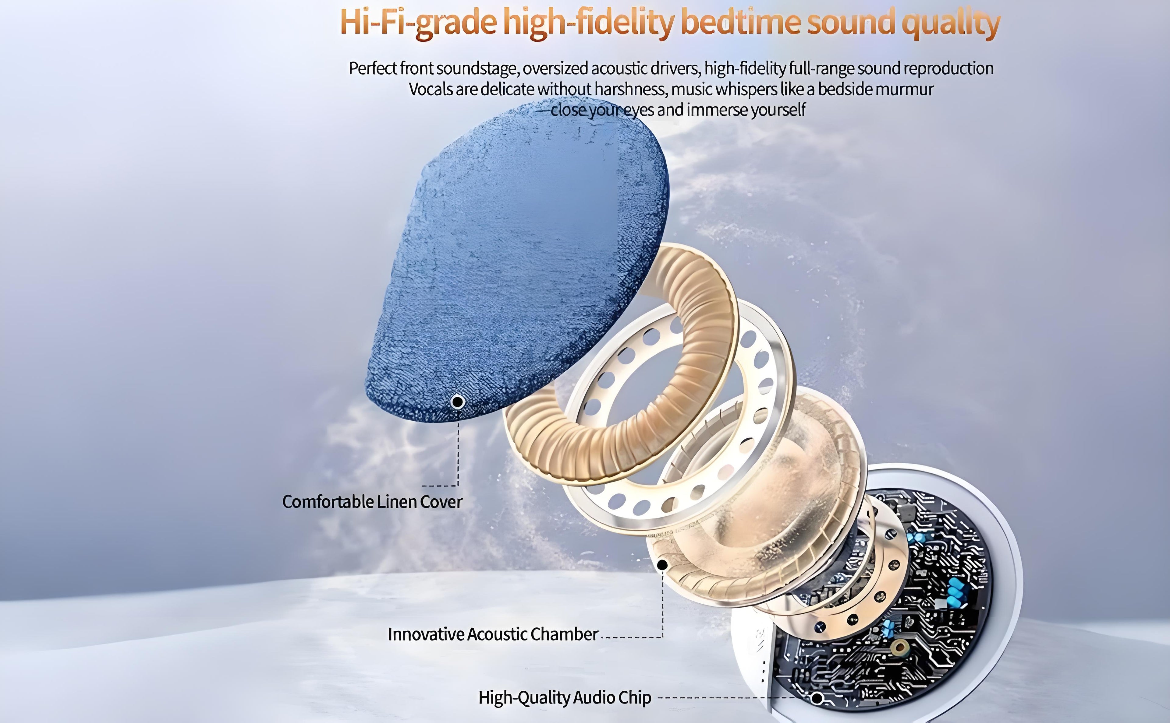 Experience peaceful sleep without bulky headphones or loud room speakers.
